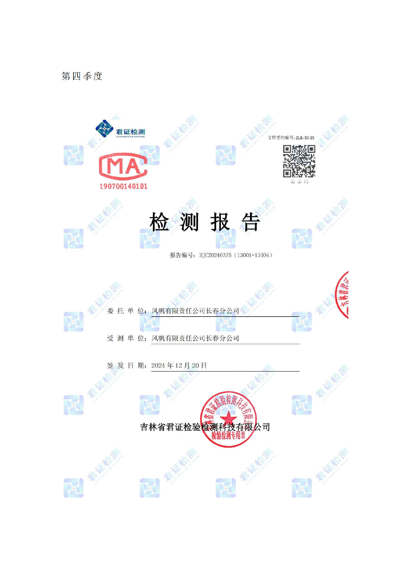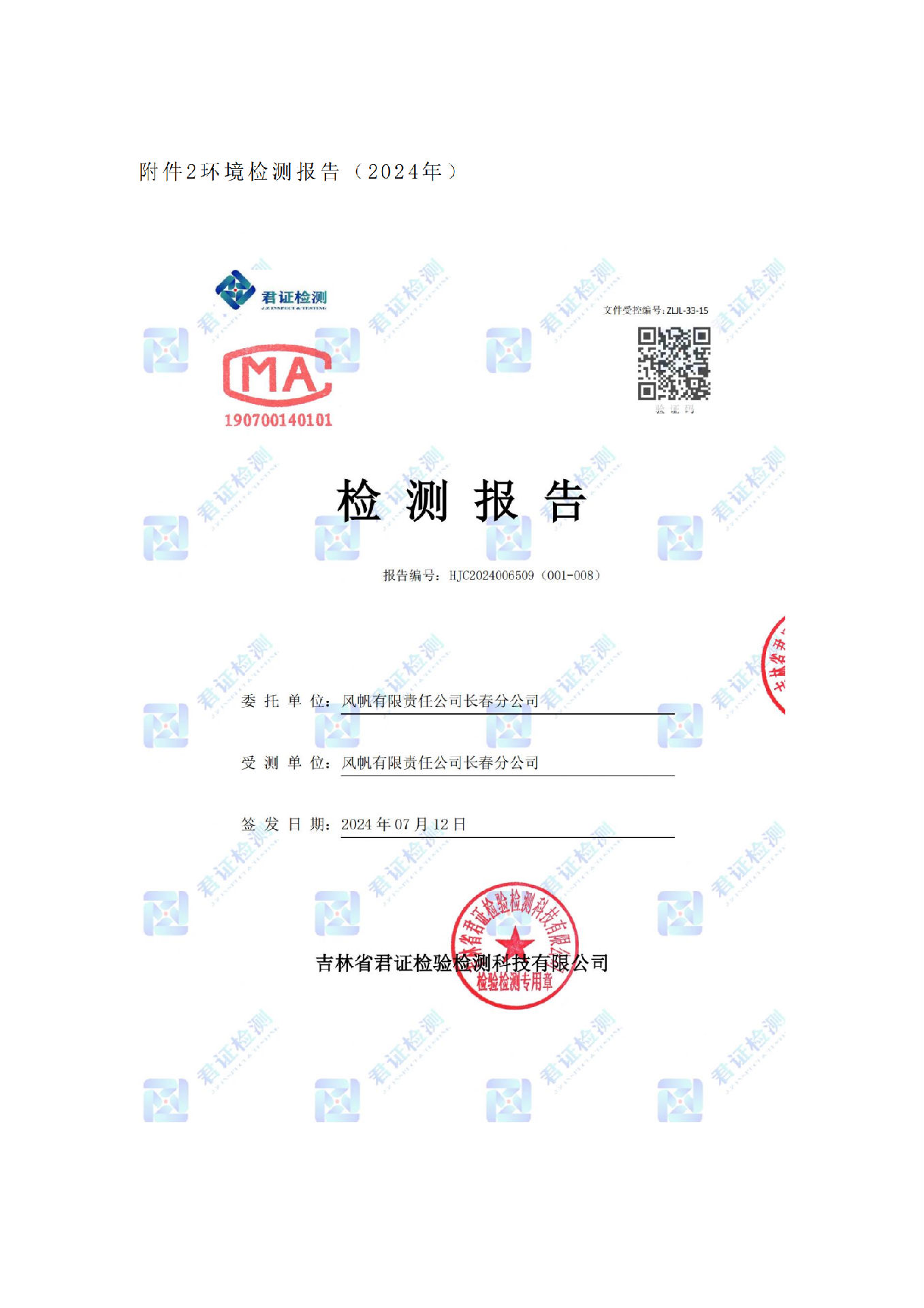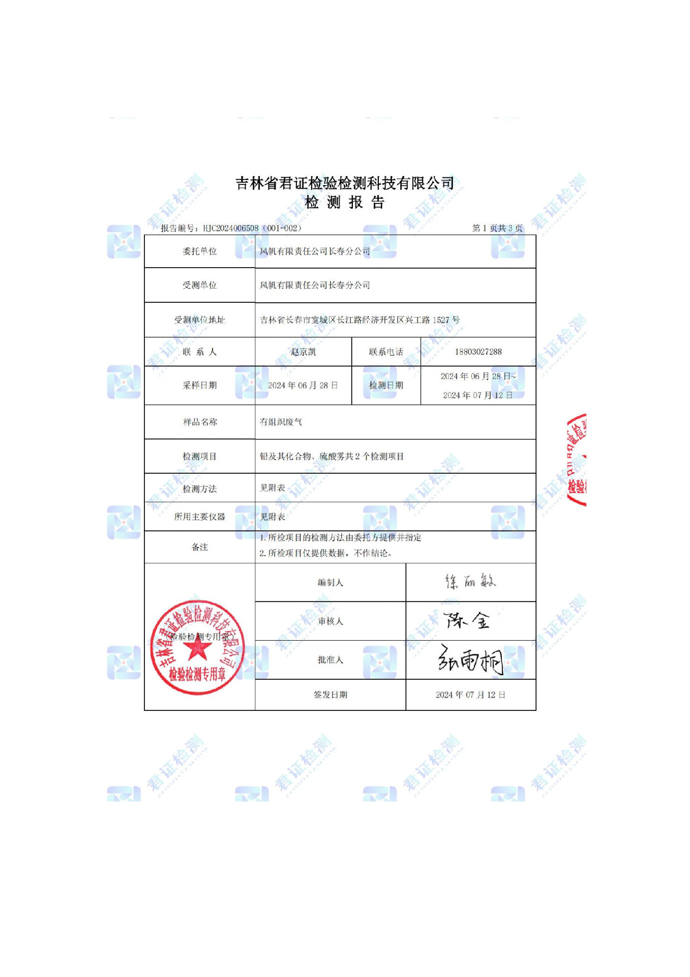 風(fēng)帆有限責(zé)任公司長春分公司2024年危險(xiǎn)廢物污染防治信息公示